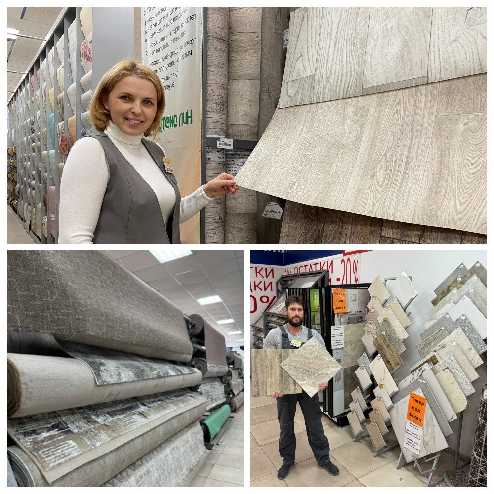 Мы готовы предложить широкий выбор линолеума, ламината, плитки, обоев, ковровых покрытий, межкомнатных, входных дверей и многое другое. В наличии врезные замки, стильные дверные ручки, долговечные петли, практичные вешалки и этажерки. Поможем в выборе товара, который идеально впишется в ваш стиль интерьера.